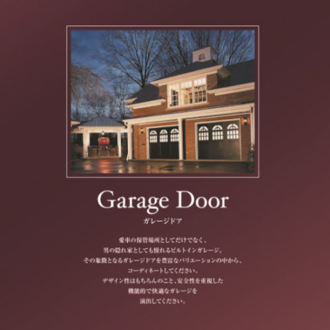 ガレージドア 愛車の保管場所としてだけでなく、男の隠れ家としても憧れるビルトインガレージ、その象徴をなるガレージドアを豊富なバリエーションの中から、コーディネイトしてください。デザイン性はもちろんのこと、安全性を重視した機能的で快適なガレージを演出してください。 -