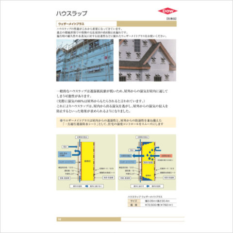 ハウスラップ ハウスラップの性能がこれから重要になってきています。過去の瑕疵担保での保険の支払い原因の約8割は水漏れです。施工時の耐久性や水蒸気に対する浸透性などに優れたウェザーメイトプラスをお使いください。 -